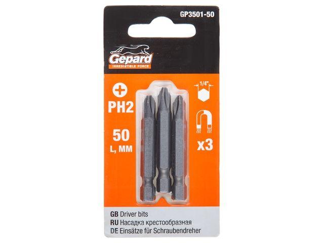 Насадка крестообразная PH2 50мм 3шт GEPARD (GP3501-50) (бита Phillips сталь S2 магнитная)