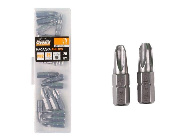 Насадка крестообразная PH2 25мм 20шт GEPARD (GP3601-25) (бита Phillips сталь S2 магнитная)