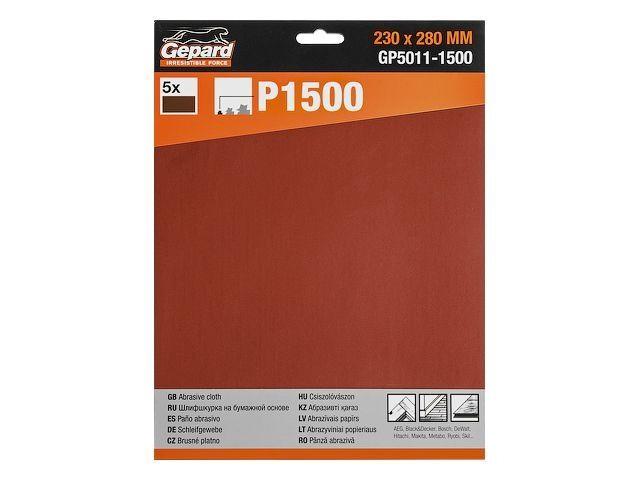 Шлифлист 230х280мм Р1500 бум.осн. 5шт. GEPARD (GP5011-1500) (бумага наждачная абразивная, лист шлифовальный