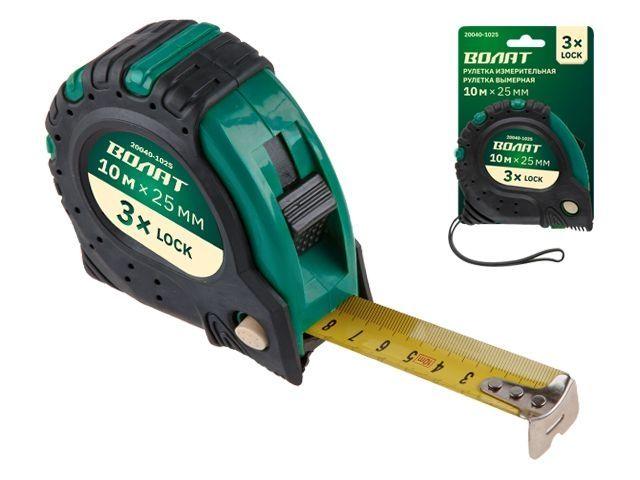 Рулетка 10м/25мм обрезин. корп. ВОЛАТ (3 мех. фиксации, ABS+TPR)