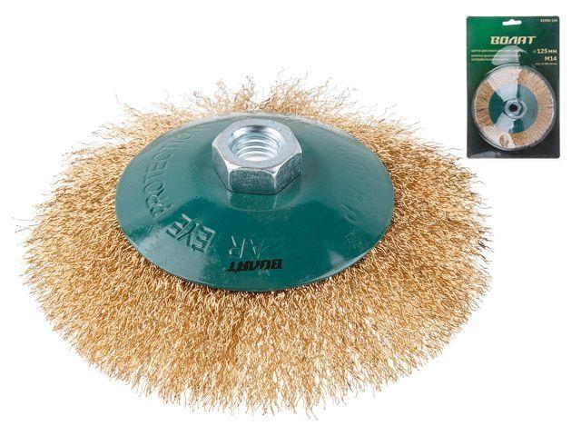 Щетка дисковая гофр.125мм/M14 ВОЛАТ (для УШМ шлифмашины болгарки М14 тарелка торцевая крацовка)