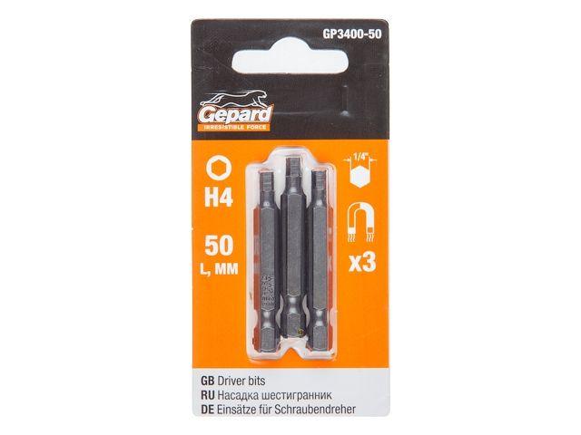Насадка шестигранник 4мм 1/4" 50мм 3шт GEPARD (GP3400-50) (H4 Hex Shank Hexagon бита под конфирмат сталь S2