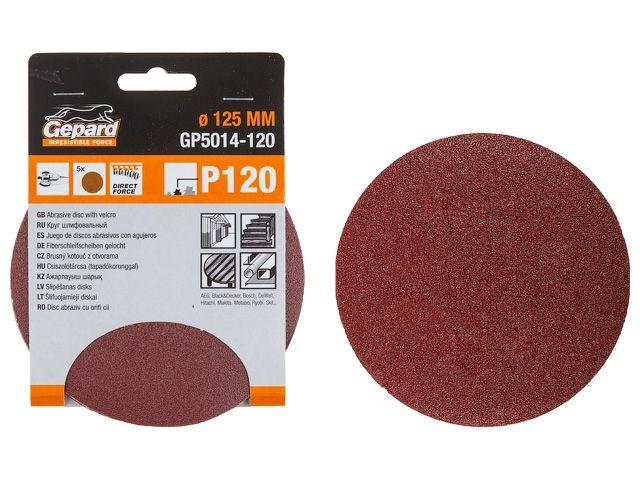 Шлифлист 125мм круг Р320 д/дерева 5шт. GEPARD (GP5014-320) (круг абразивный шлифовальный)