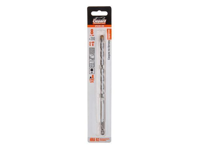 Сверло по бетону 8х200мм шестигр. GEPARD (GP0228-200) (усиленная пластина, Impact, победитовое ударное)